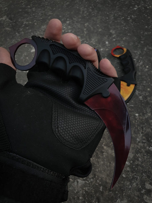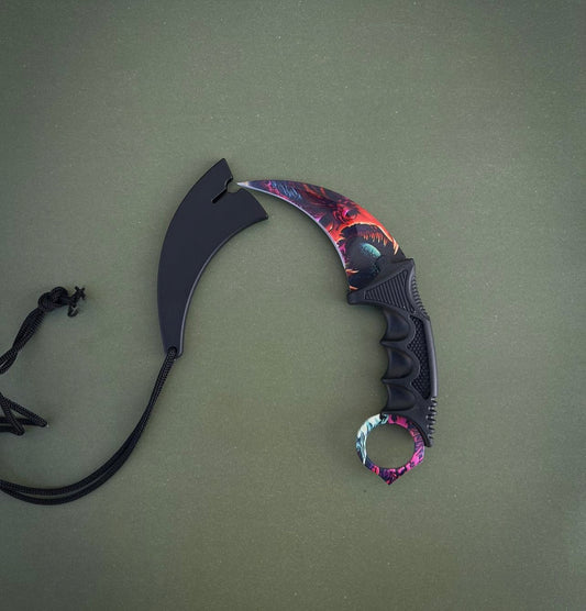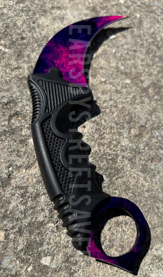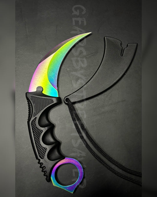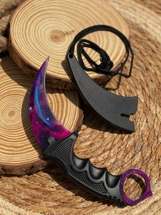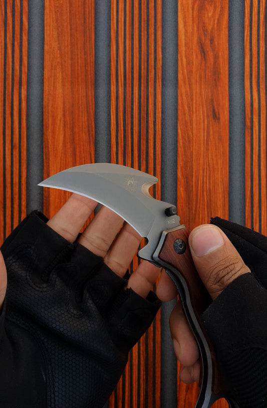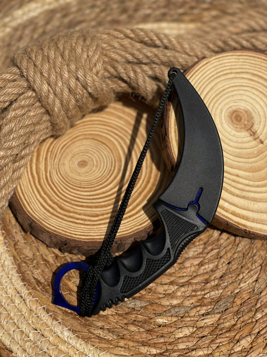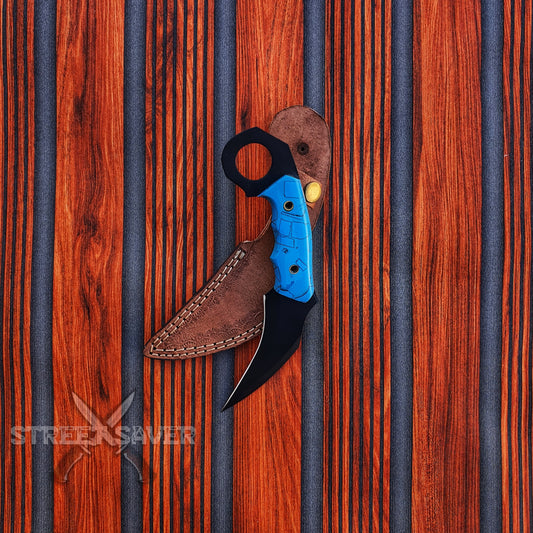 Black Coding Handmade Karambit with Leather Sheath (Blue Handle )